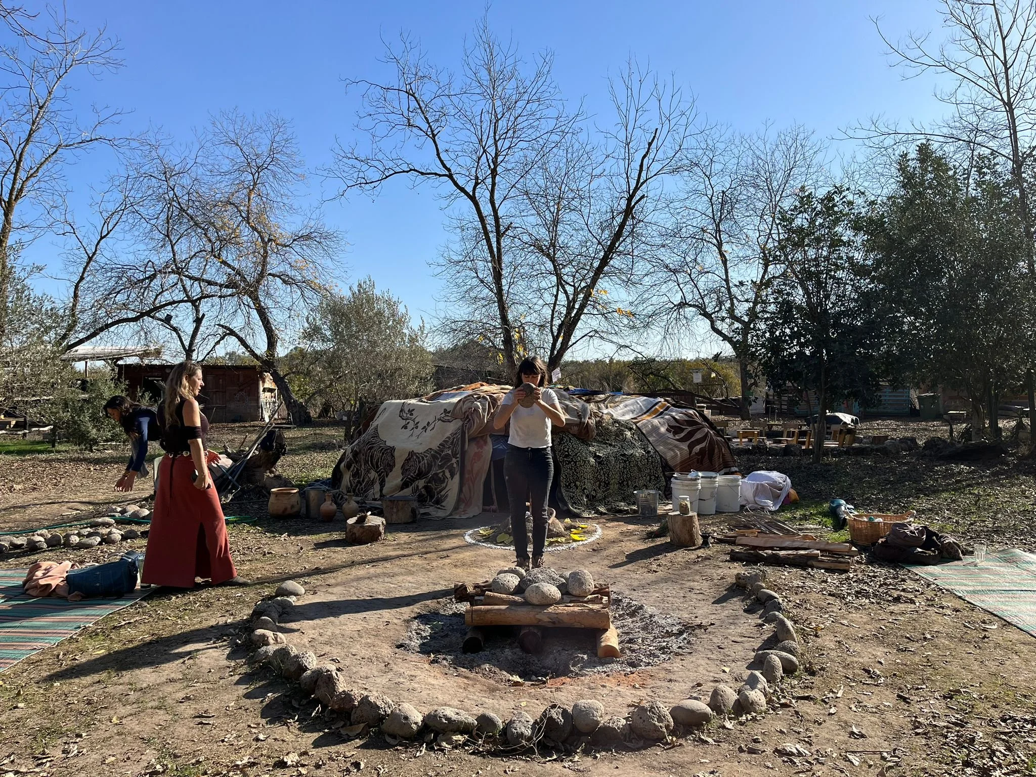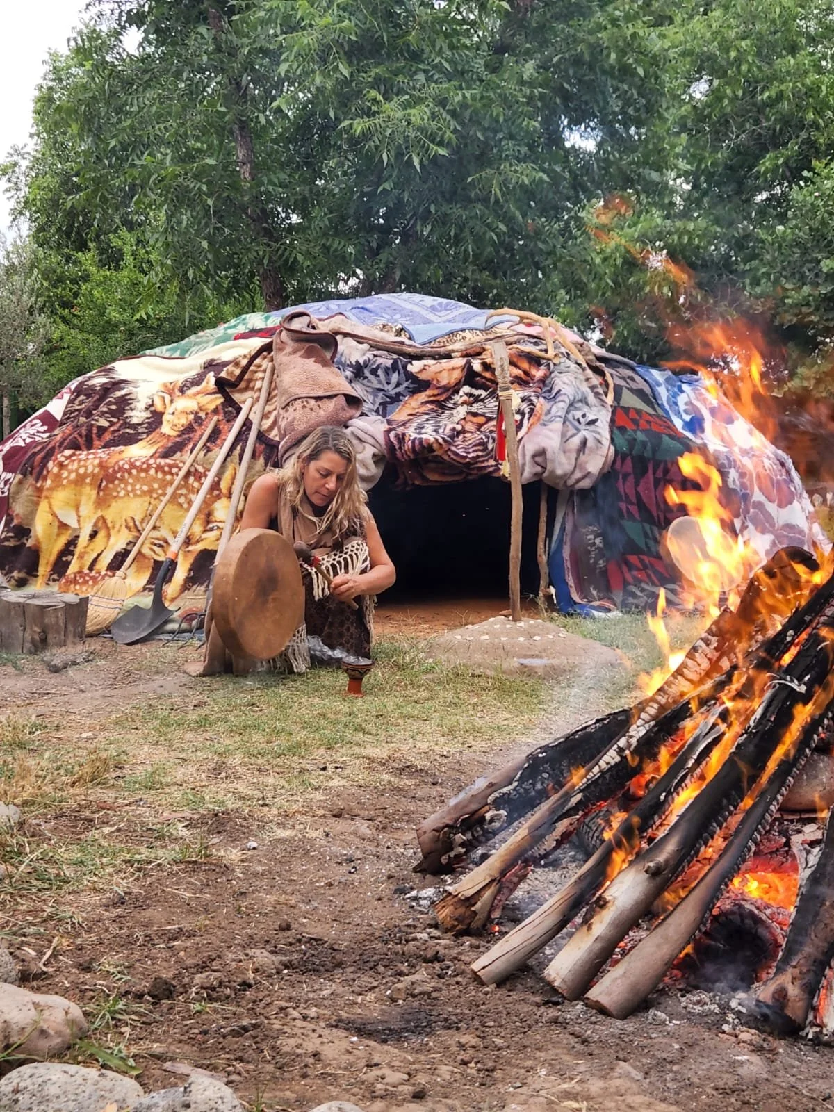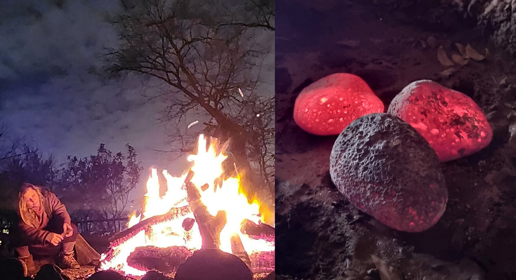 בין שמיים לאדמה, מאורת אש, גחלים לוהטות, צלילים מרפאים וטבע ירוק מלא בחי וקולות פרא